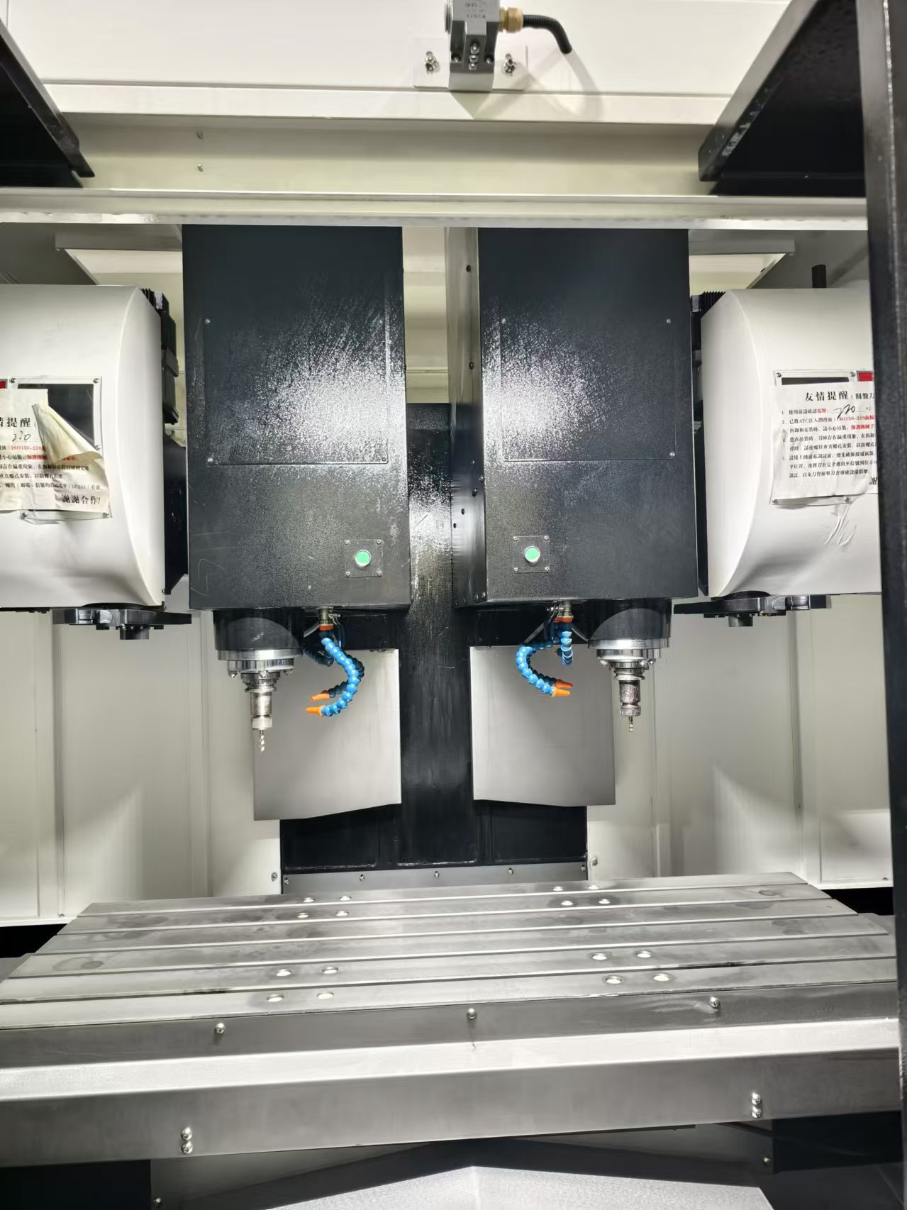 在啟動雙主軸立式加工中心時,需要先啟動X、Y和Z三軸,確保兩個主軸可以正常轉動。